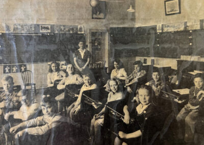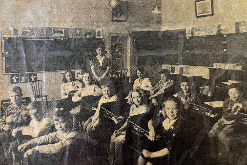 Mrs. Raaths, the teacher tells us, there were 12 students in the class. She recalls, in 1946 there was an acute shortage of teachers. I was called back into the teaching field. The Advance School was a two room, state graded school with between 60 and 80 students. In 1946 there were only 12 pupils in the whole school.