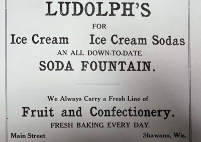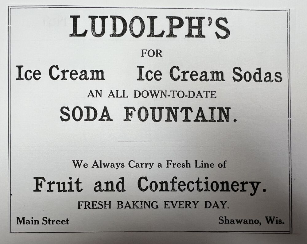 Ludolph’s Grocery was reputed to be the first business in Shawano to sell fresh fruits and vegetables, a distinction which was probably made possible by the growth in truck farming, or vegetable farming for sale, throughout much of Northeast Wisconsin in the late 1890s and early 1900s. He also sold fresh Christmas holly and oysters.