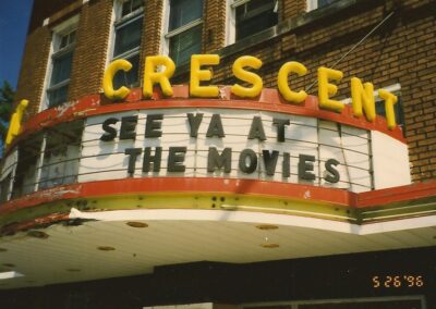 The Crescent has been re-seat-ed three times since the first opera seats were installed back in 1915 and the modernization work was completed as the times demanded. The theatre seats less than it did back in 1915 due to the modern, larger and more comfortable seats installed. The upstairs was originally used as a dance hall and meeting room for various organizations before the city had a community hall.