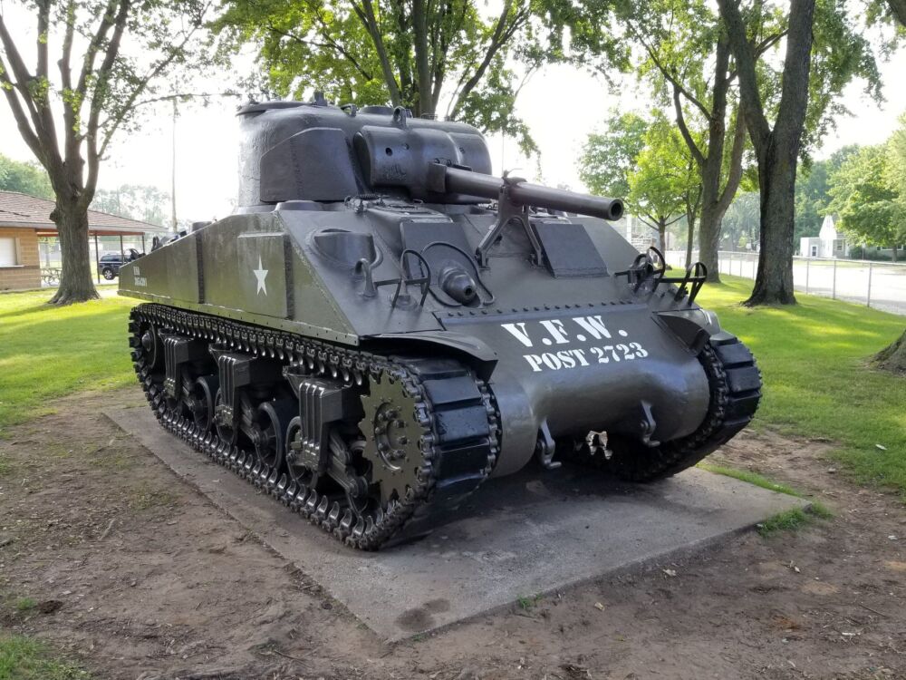Joe Dillenberg with the VFW in Shawano tells us, “It was acquired by the VFW post in 1953 for display in town. Technically, it is still on loan from the federal government. It seems that quite a few veterans’ organizations in Wisconsin and Minnesota secured tanks for display in the mid 50’s from TACOM.” TACOM is the United States Army Tank-automotive and Armaments Command and they have a program where organizations can request display of surplus military equipment in communities and organizations like the VFW.