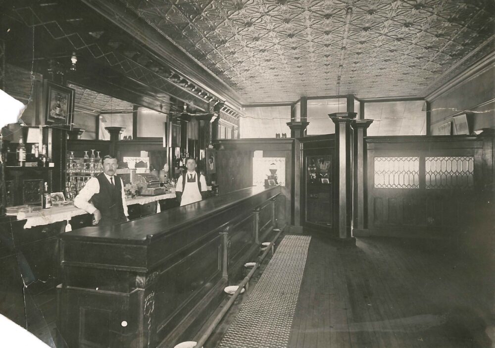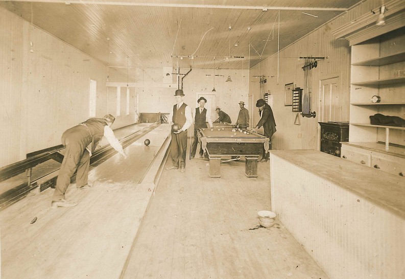 The first three photos show the bar from 1902-1912. The fourth photo is from 1912 and shows the 1st bowling alley in Wittenberg owned by Joe Turecek.