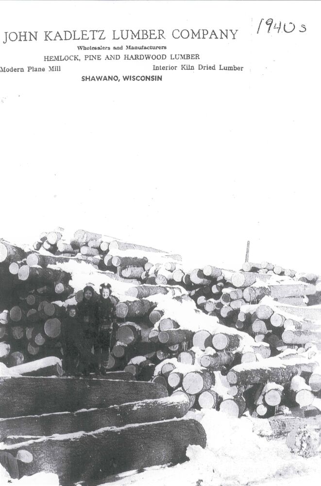 In 1915 the plant was sold and the late John Kadletz, Sr. retired and traveled south. In 1917 the new plant was built in Shawano. It was operated as a custom mill for five years, cutting out war contracts. In 1923 the company was expanded to care of retail lumber trade by annexing the different building materials. At this time John Kadletz, the present owner, joined the business and steadily created a complete lumber and building material service. After the retirement of John Kadletz, Sr. from the business, Alfred Kadletz. sold out to John R. Kadletz in 1945.